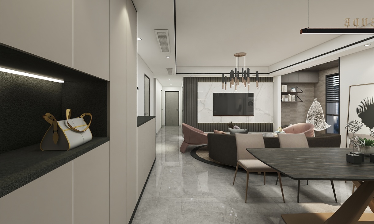 每個(gè)空間至少2張效果圖+1張全案全景圖展示,方案描述完整,所有空間需命名。