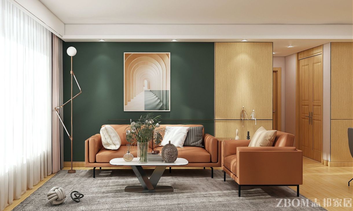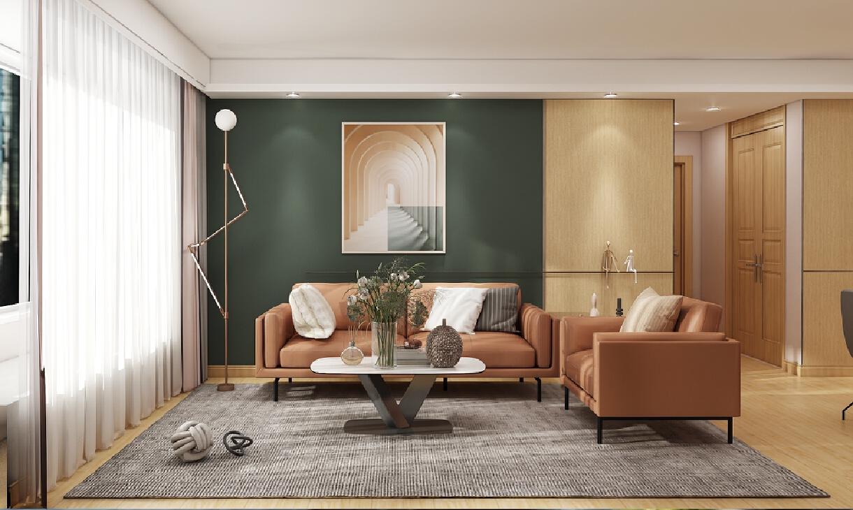 現(xiàn)代輕奢,木飾面的柔和與橄欖綠相呼應(yīng),銜接自然,而賦予美感。
