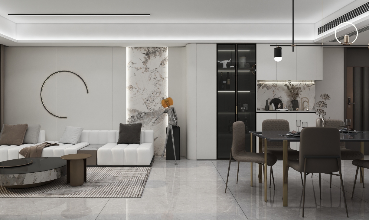 每個空間至少2張效果圖+1張全案全景圖展示,方案描述完整,所有空間需命名。