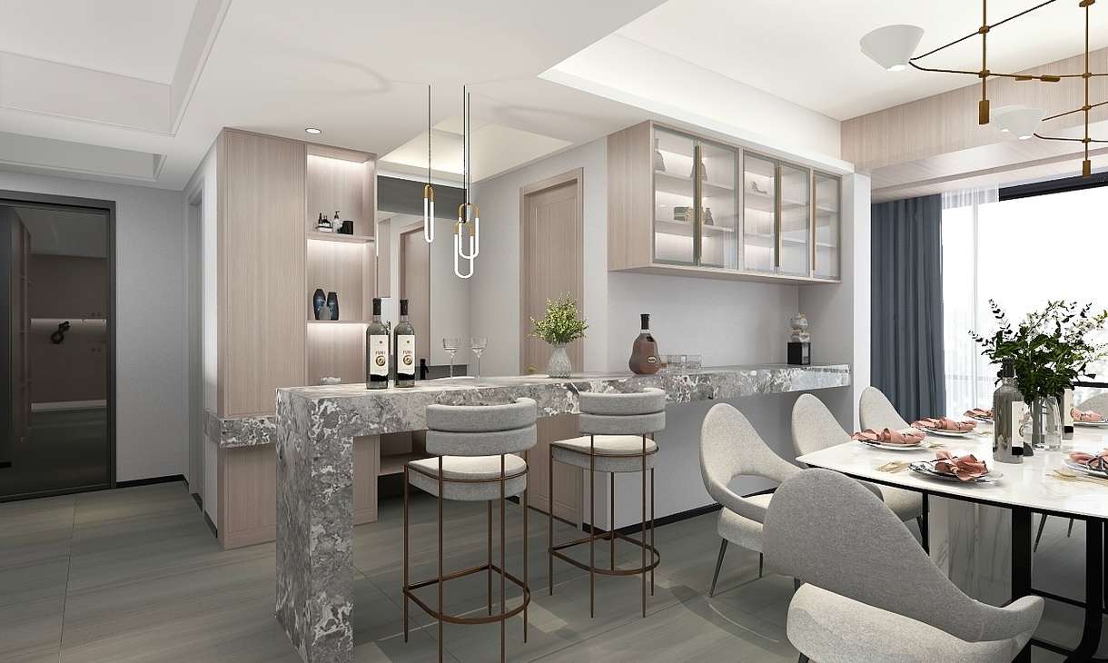 每個空間至少2張效果圖+1張全案全景圖展示,方案描述完整,所有空間需命名。