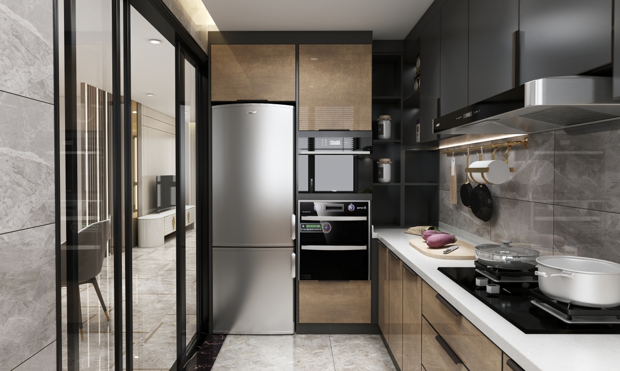 布藝、皮質(zhì)與金屬的搭配為空間增加了豐富的層次感,灰色調(diào)的柜體、金沙棕的門板與灰白色的墻壁相呼應(yīng),更顯空間的華麗質(zhì)感,與輕奢家具相得益彰,輕奢是一種生活態(tài)度,一種生活理念,不將就過(guò)去,不為炫耀夸贊,但要盡情享受生活的美好。