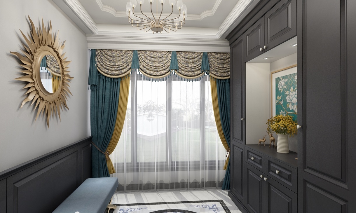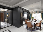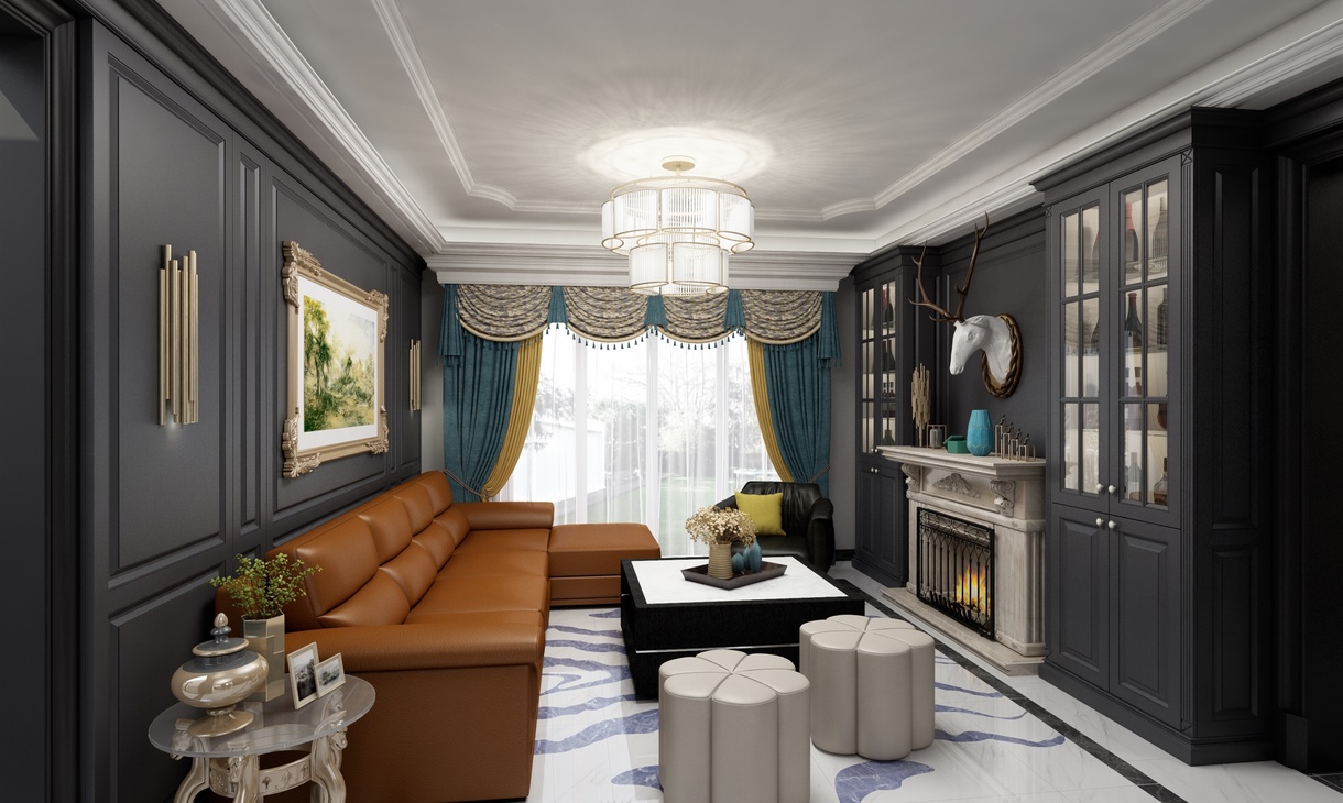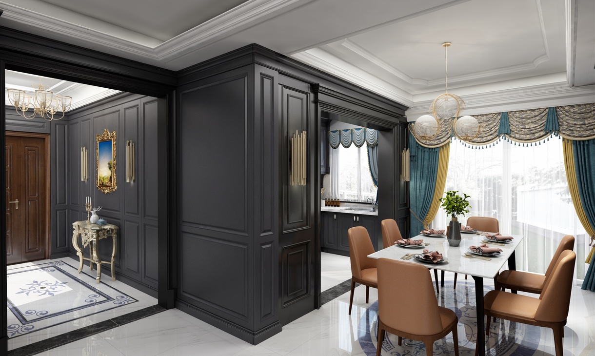 本案為一套面積127平米的美式輕奢案例,在設(shè)計(jì)上,公共區(qū)域多層次的使用護(hù)墻板,高級紳士灰的運(yùn)用奠定了空間優(yōu)雅而有力量的基調(diào),具有現(xiàn)代感的金屬黃銅色燈具的加入打破傳統(tǒng)美式的定義,使得整個空間變得年輕時尚。