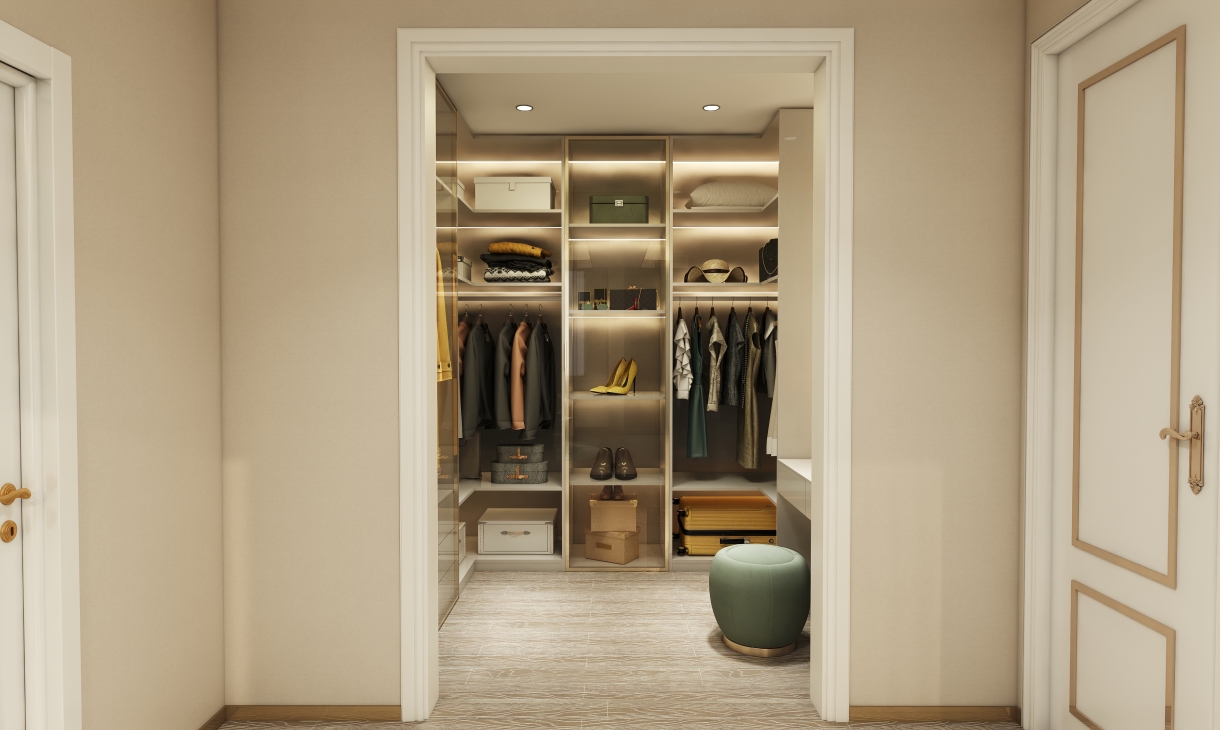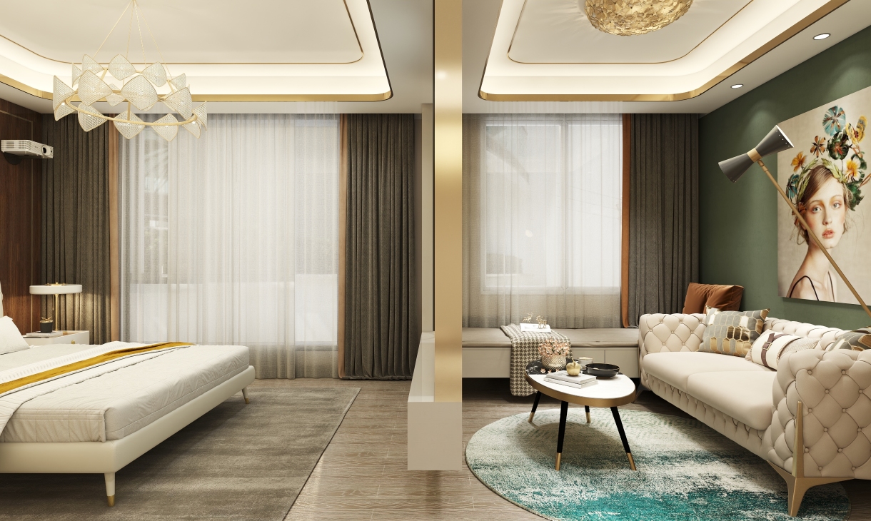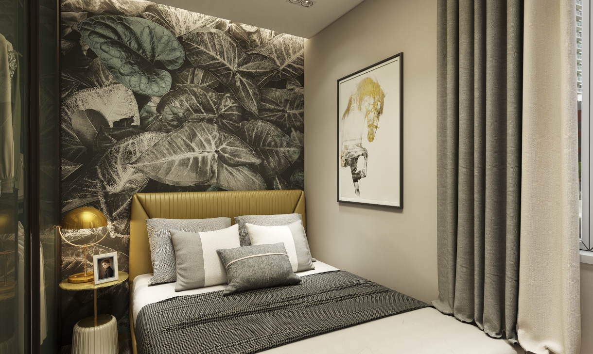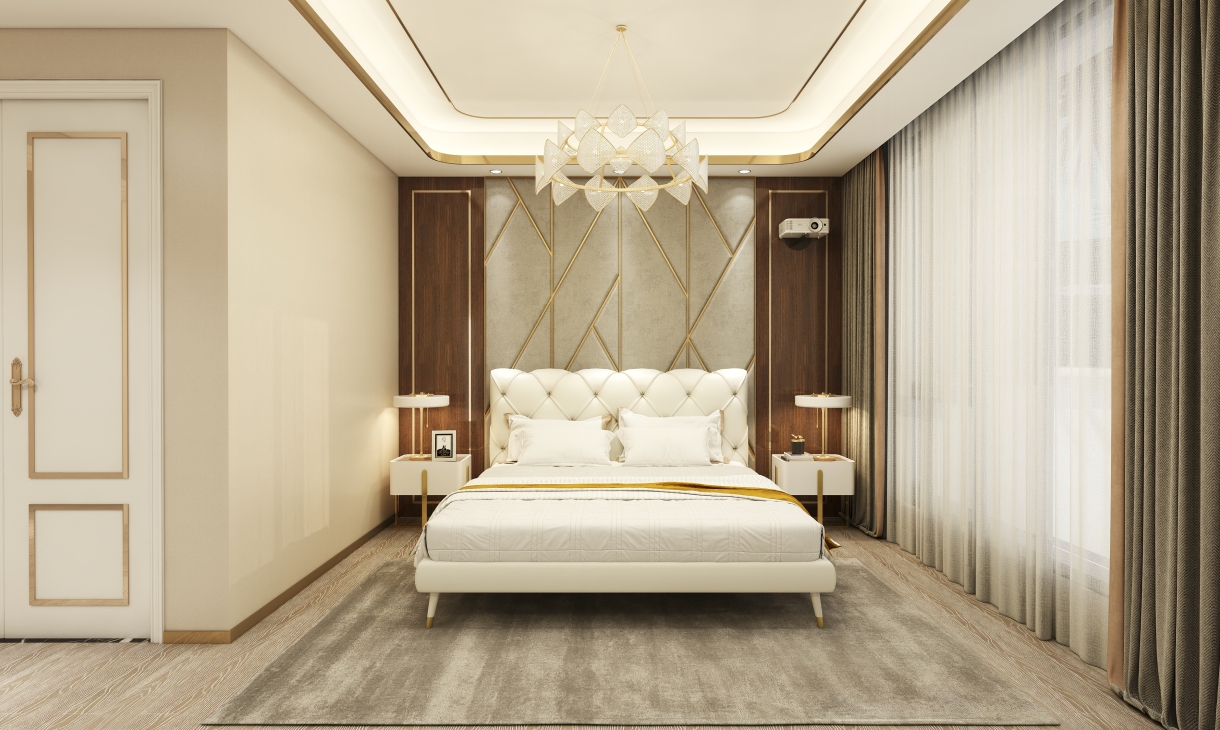 客臥空間較為狹窄,沒(méi)有太多的要求,因此延續(xù)了現(xiàn)代輕奢的整體的設(shè)計(jì)體系。平頂無(wú)主燈,反燈槽,AB墻面等,通過(guò)軟裝的搭配,以更為簡(jiǎn)單的手法,體現(xiàn)居室的輕奢氛圍。