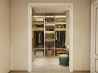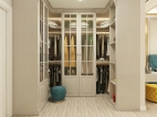 主臥同樣是大面積的開(kāi)放式布局,集合了臥室區(qū),休閑區(qū),衣帽間。延續(xù)了客餐廳的設(shè)計(jì)理念,懸空隔斷背景墻,帶來(lái)更為輕盈通透的視覺(jué)效果。業(yè)主想居室空間能稍具浪漫,歡快的格調(diào),故墻面采用了墨綠色的跳躍色彩,優(yōu)雅的少女油畫(huà)則提升了空間浪漫恬靜的氣息。開(kāi)放式的衣帽間,心儀的服飾鞋包則是最為賞心悅目的裝飾。