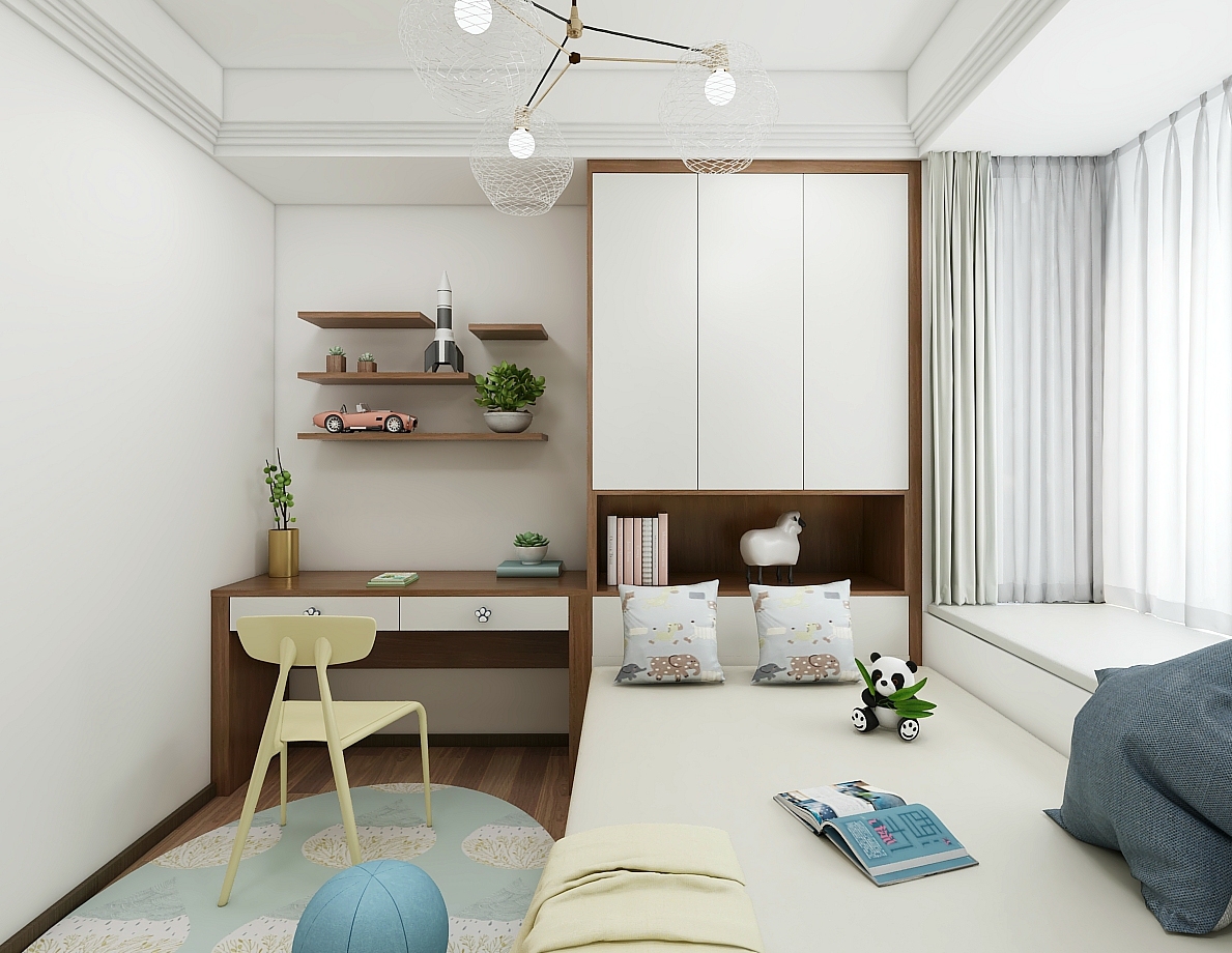 效果圖:全屋概覽效果圖、客廳效果圖、餐廳效果圖、廚房效果圖、兒童房效果圖、主臥效果圖