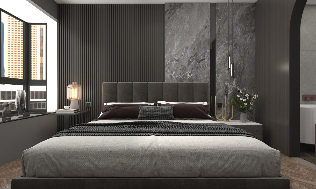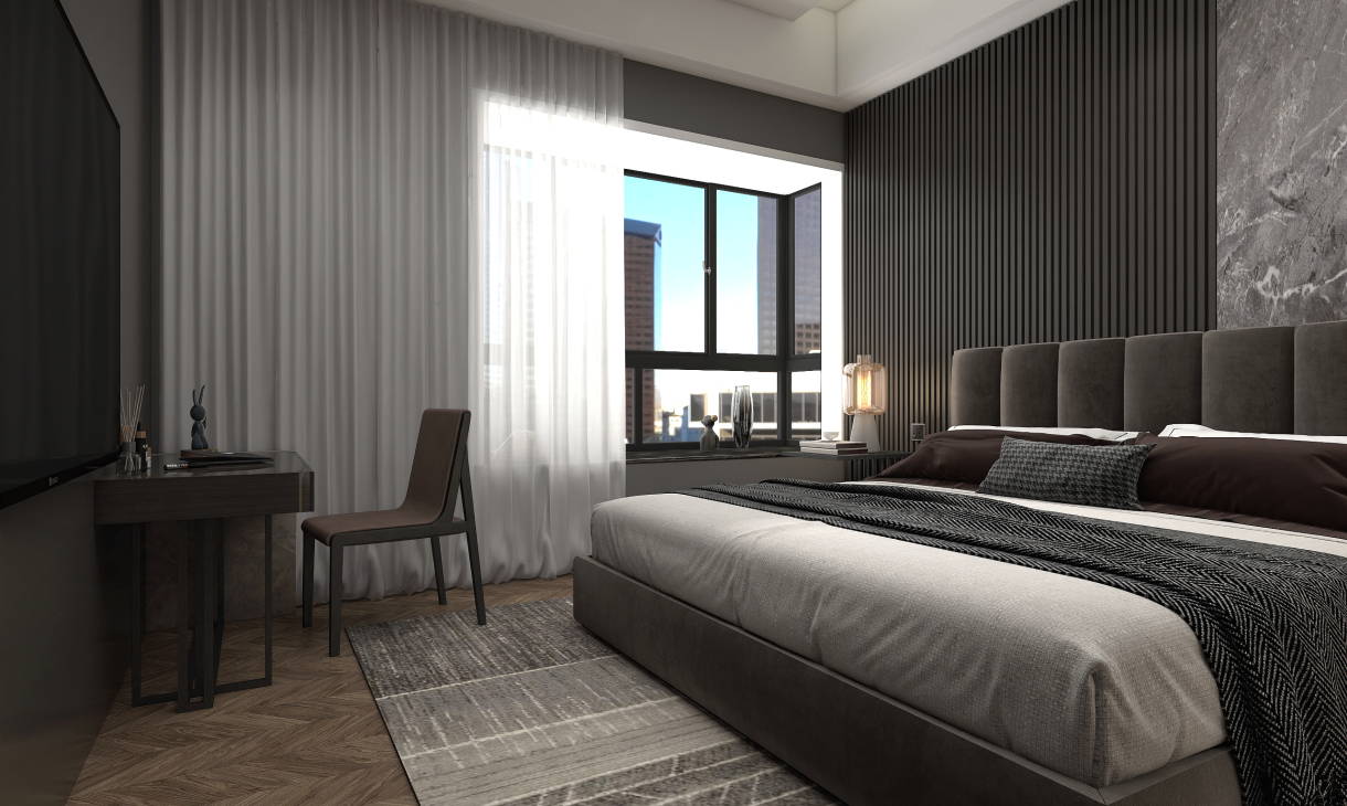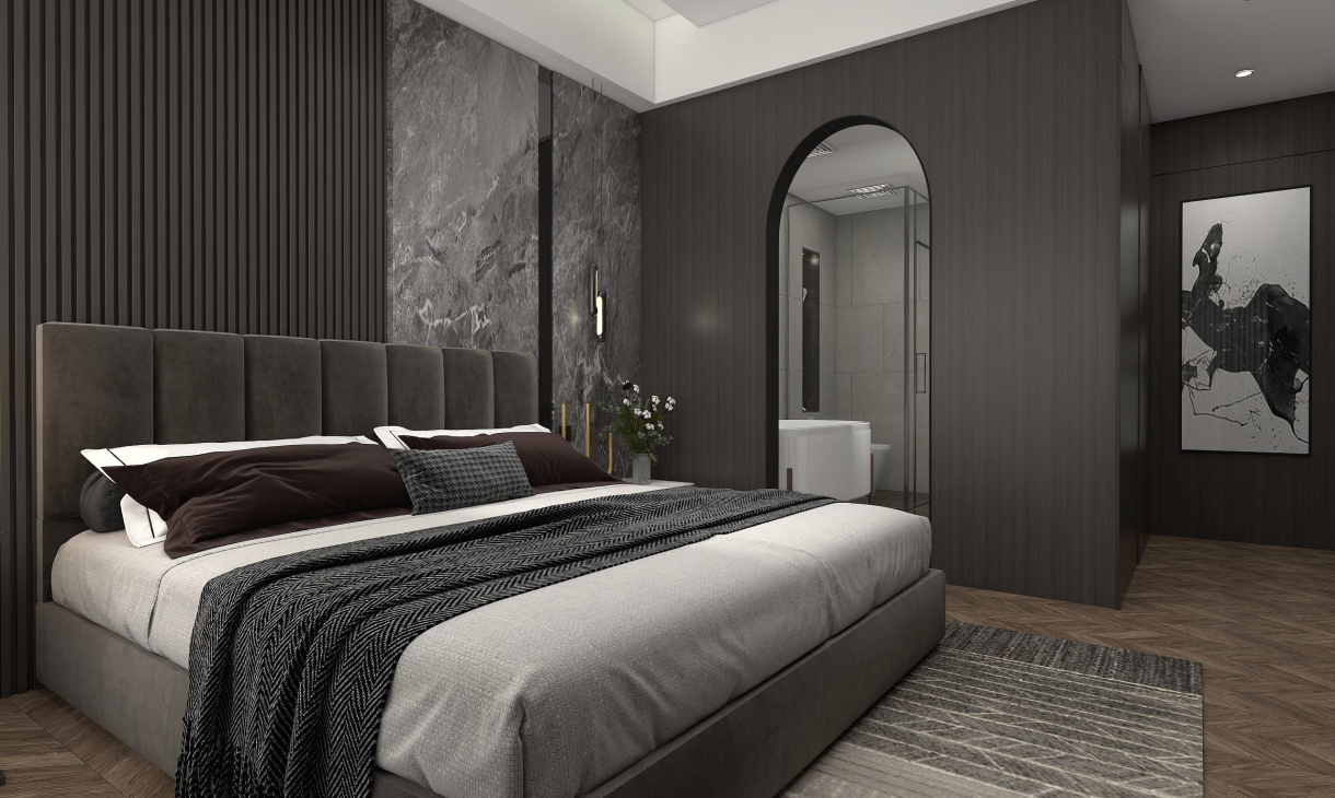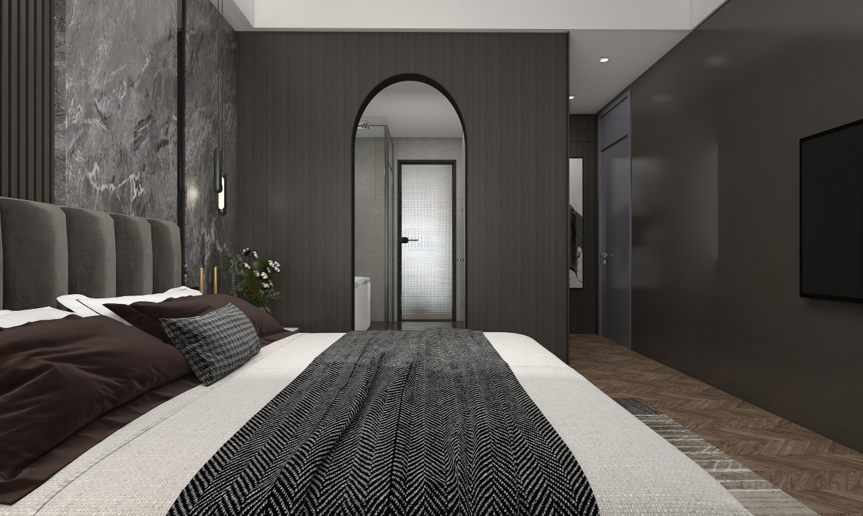 主臥被合并設(shè)計(jì)成套房,延伸平層的空間感,極大的改善了主臥的功能多樣性和尺度關(guān)系,于漫漫歲月中,賦予生活欣喜安然