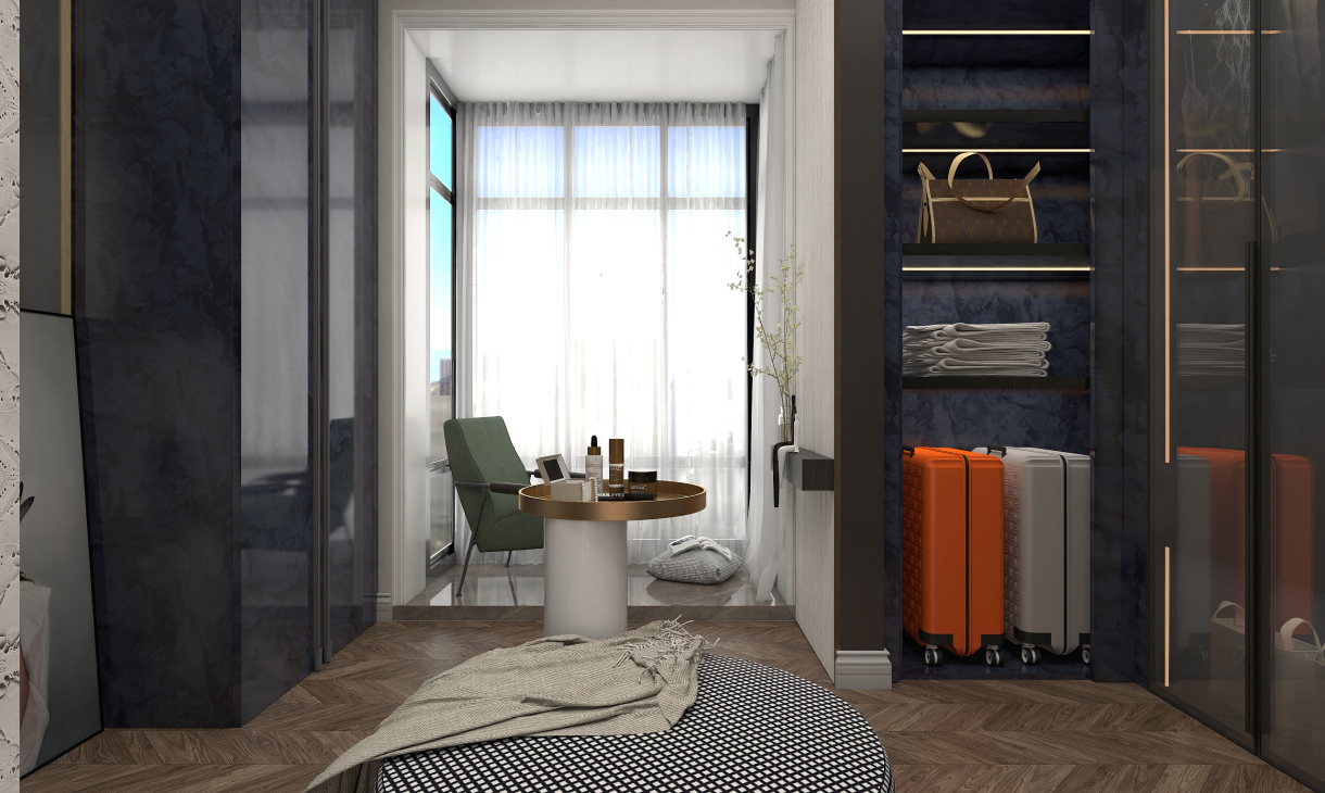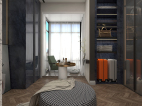 衣帽間星云系列 同時(shí)點(diǎn)綴橙色,從視覺上豐富層次,也溫暖了空間,色彩上一素一暖,一抑一揚(yáng),在開放的格局里,暗示著不同的功能與氛圍屬性