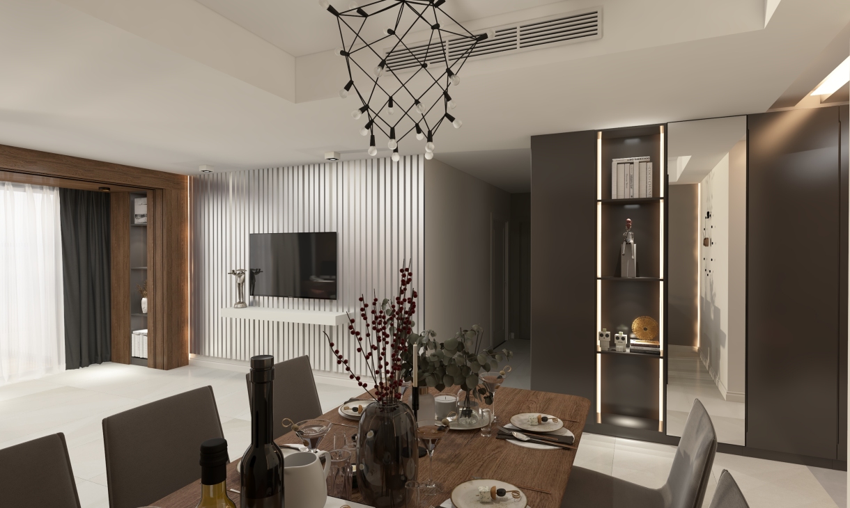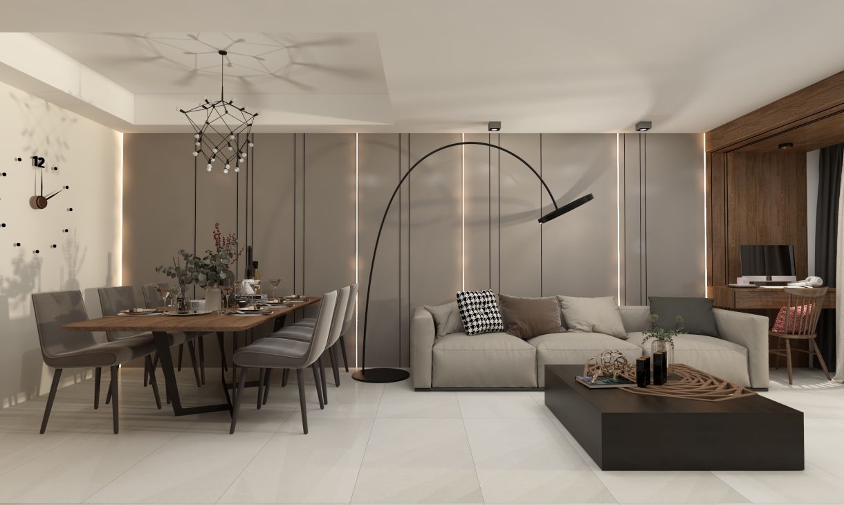 每個空間至少2張效果圖+1張全案全景圖展示,方案描述完整,所有空間需命名。