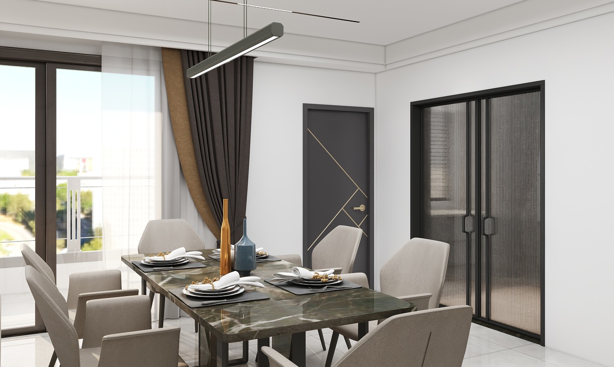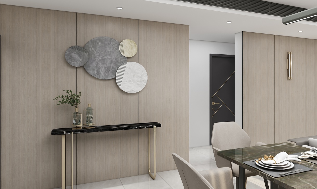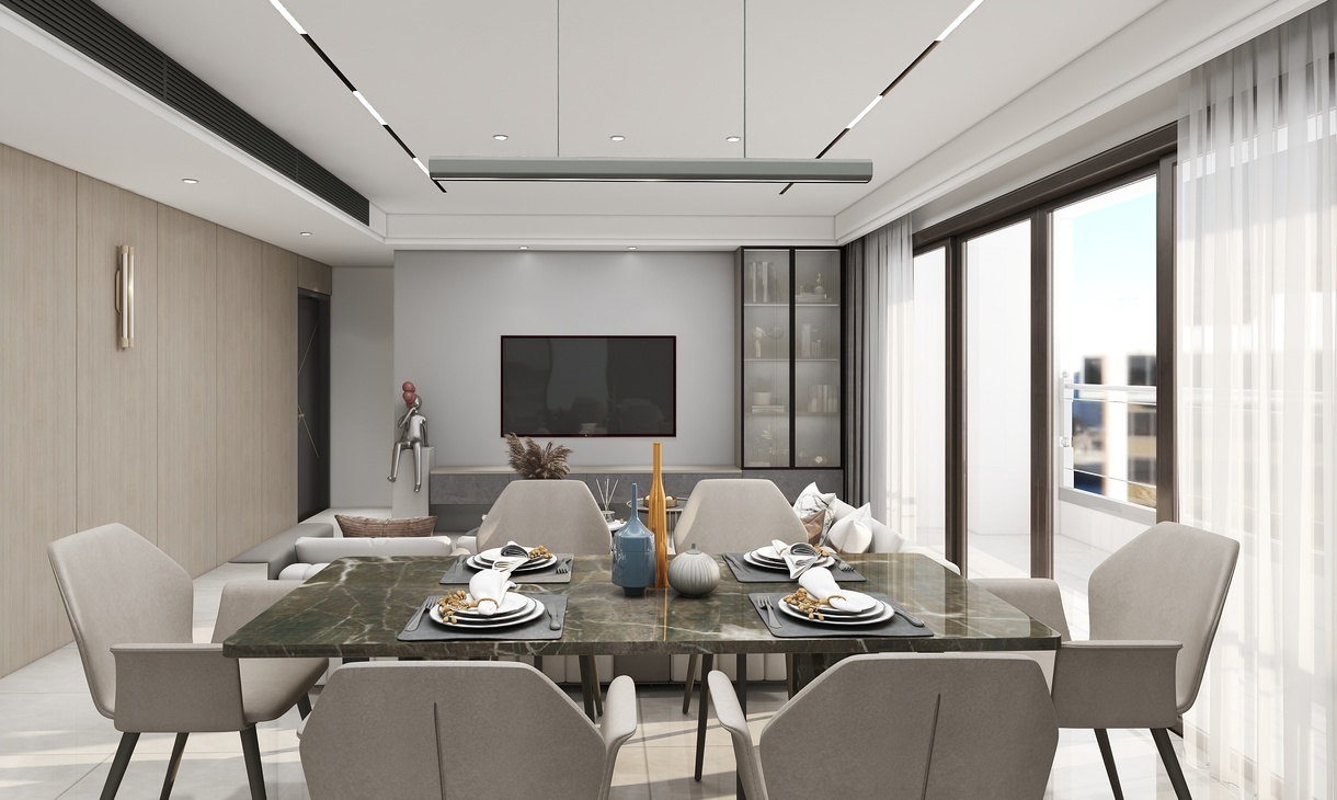 將餐廳和客廳連通在一起,擴(kuò)大了空間的視覺感。想要打造一個(gè)有質(zhì)感的餐廳,輕奢的風(fēng)格是不二的。