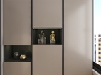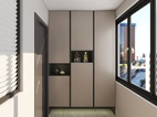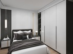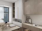 次臥的設(shè)計(jì)亦散發(fā)著簡潔凝練的當(dāng)代藝術(shù)氣息,以木紋色為主調(diào),營造一個(gè)溫暖的氛圍。