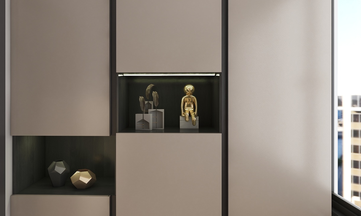 輕奢并不是追求浮夸的裝飾而是空間整體用簡單的線條與色彩去造就一份輕奢的美感。