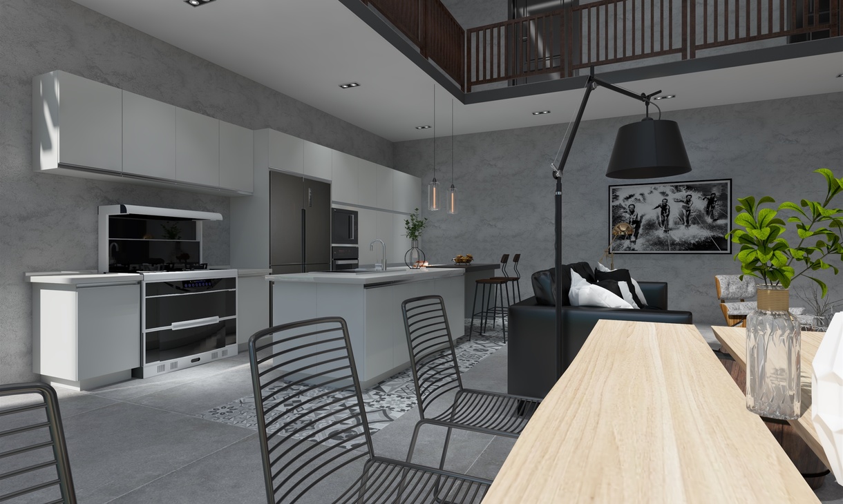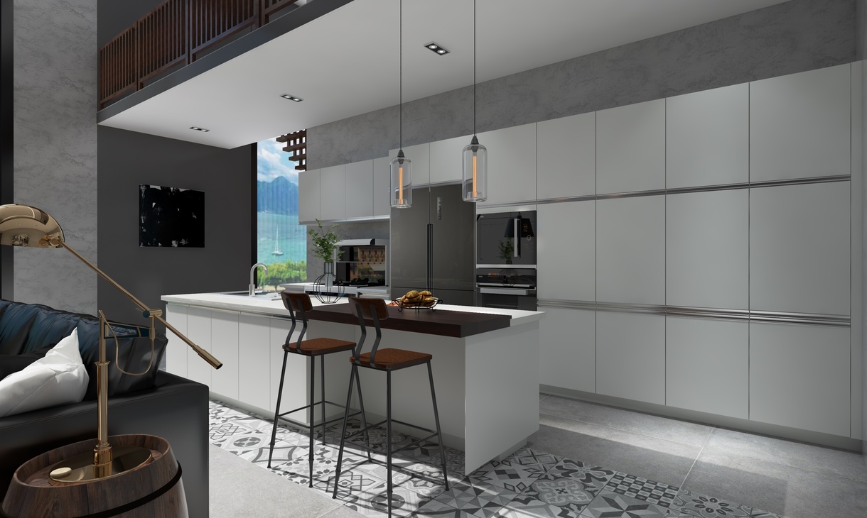 簡(jiǎn)潔美觀,是業(yè)主對(duì)整體的基本要求,一切從簡(jiǎn),萬般實(shí)用是我對(duì)這個(gè)空間的小小領(lǐng)悟。簡(jiǎn)單的顏色,簡(jiǎn)單的格局把中廚和西廚凝聚在這個(gè)小小空間里。既能體驗(yàn)一下烘焙的樂趣,又能品嘗爆炒雞丁美味。我們希望居住在這里的人不僅能體會(huì)舌尖上的美味,更能享受親歷體會(huì)的氛圍。