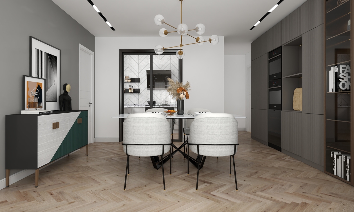 整空間以經(jīng)典的黑白灰為主色,跳綠色和橙色,同時(shí)加入玻璃和金屬元素,用材質(zhì)本身的色調(diào)與肌理表達(dá)空間質(zhì)感,簡(jiǎn)約卻不乏精致,低調(diào)中透露溫馨。
