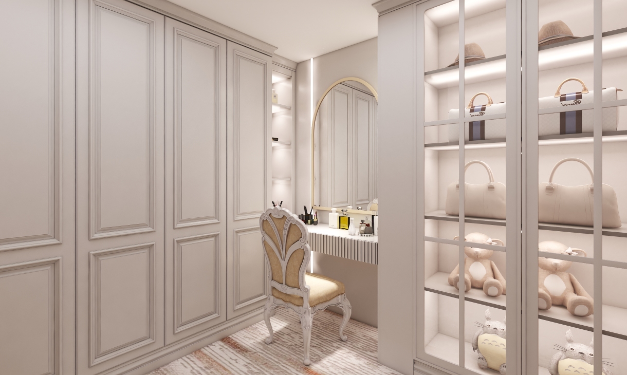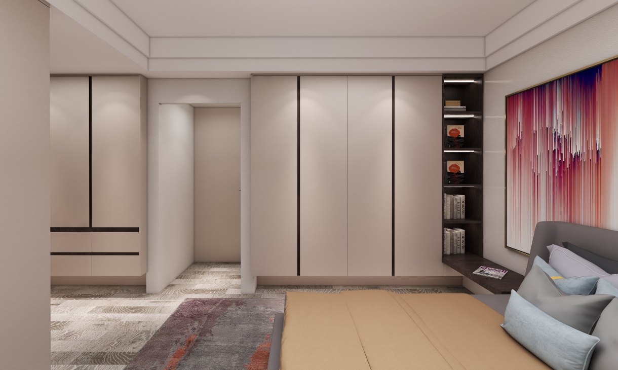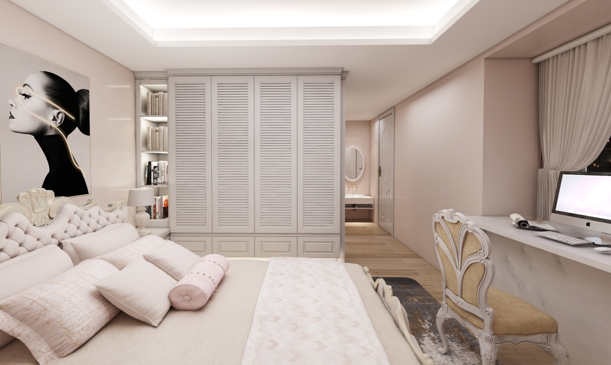 業(yè)主喜歡看上去干凈又不要太平凡的設(shè)計(jì),女兒是在海外留學(xué),他的房間單獨(dú)想要浪漫的感覺,故創(chuàng)造了懸空·夢(mèng)
