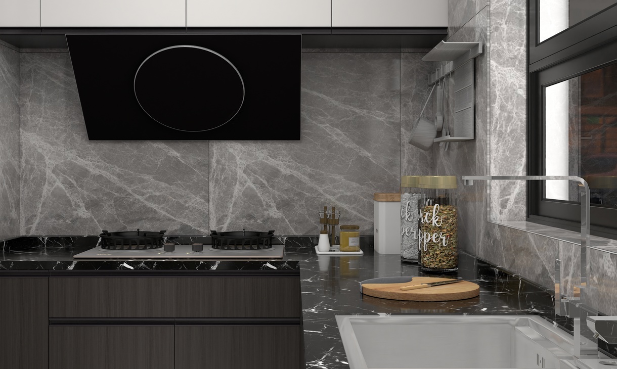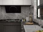 廚房整體沉重,經(jīng)典黑白配,層次分明