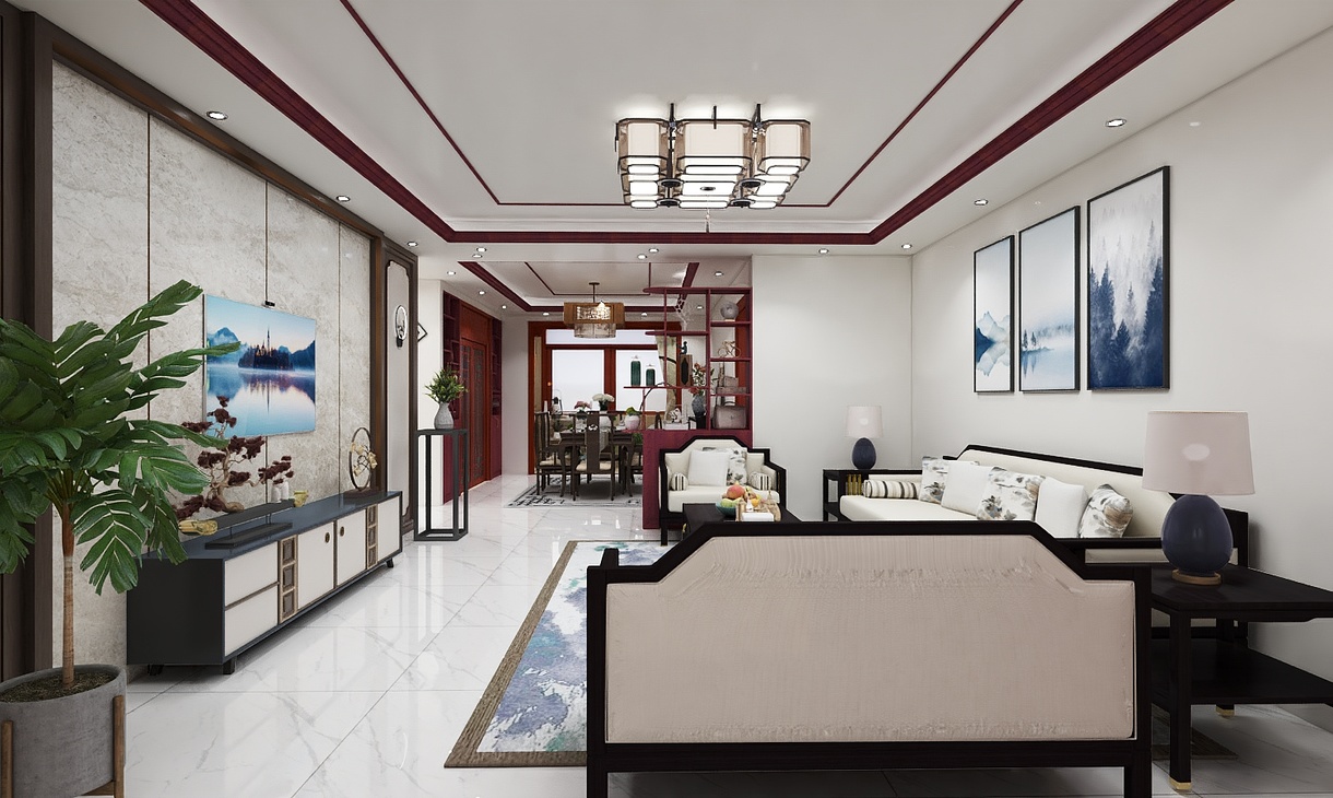 客餐廳的主體風(fēng)格為新中式,古典中用輕時尚點綴
