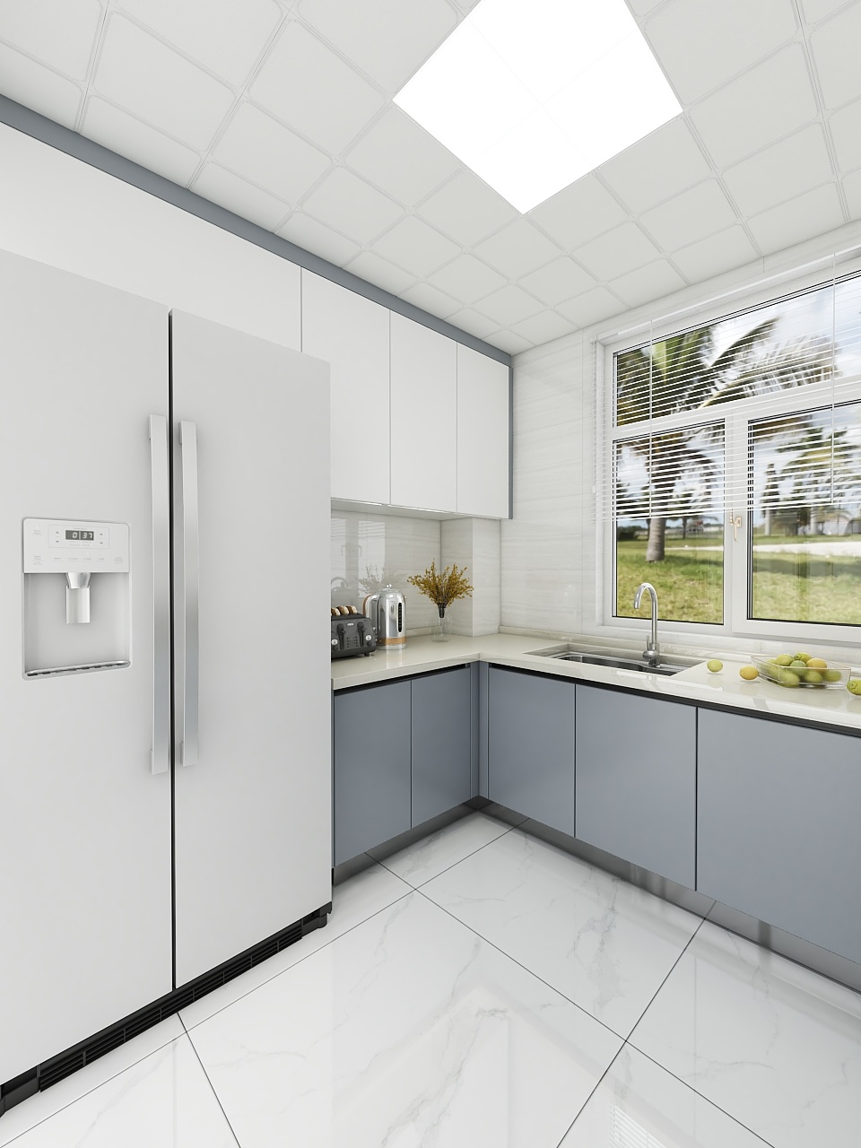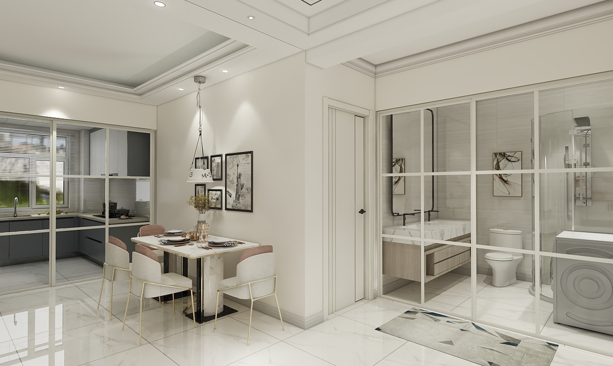 干凈簡潔的設(shè)計風格,在空間中運用了黃金三角點,減輕使用的勞作時間。