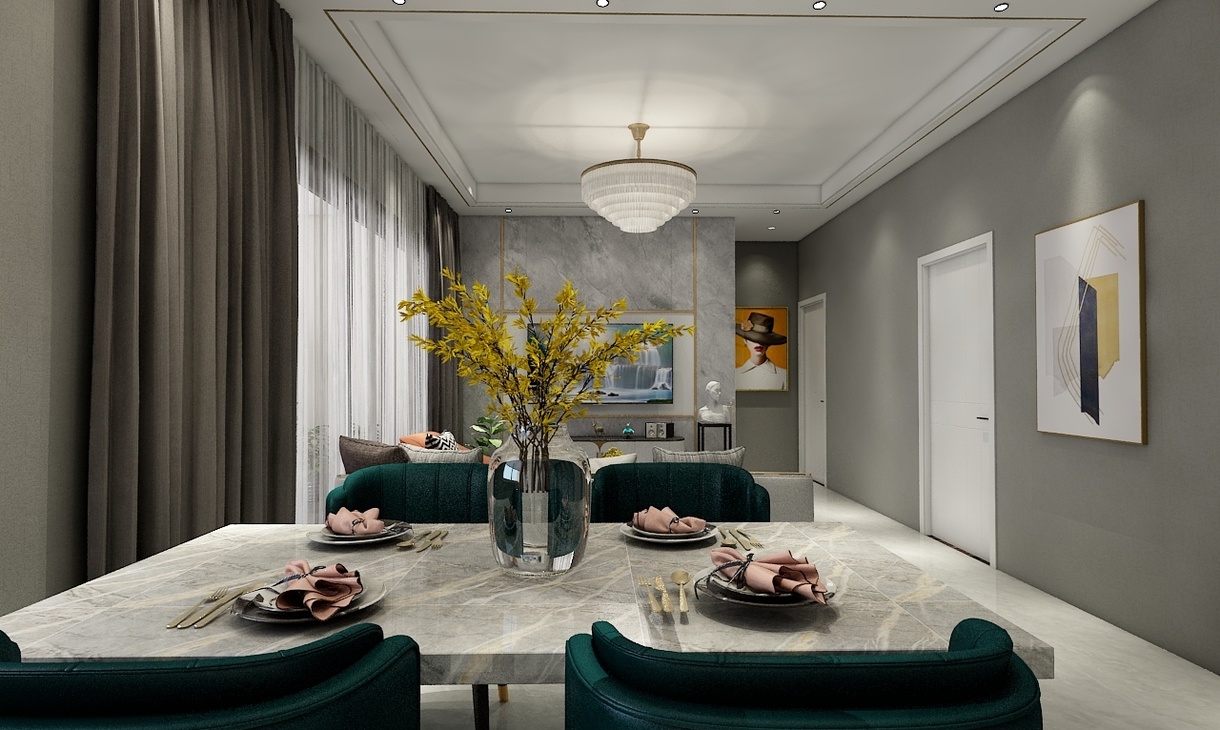 每個空間至少2張效果圖+1張全案全景圖展示,方案描述完整,所有空間需命名。