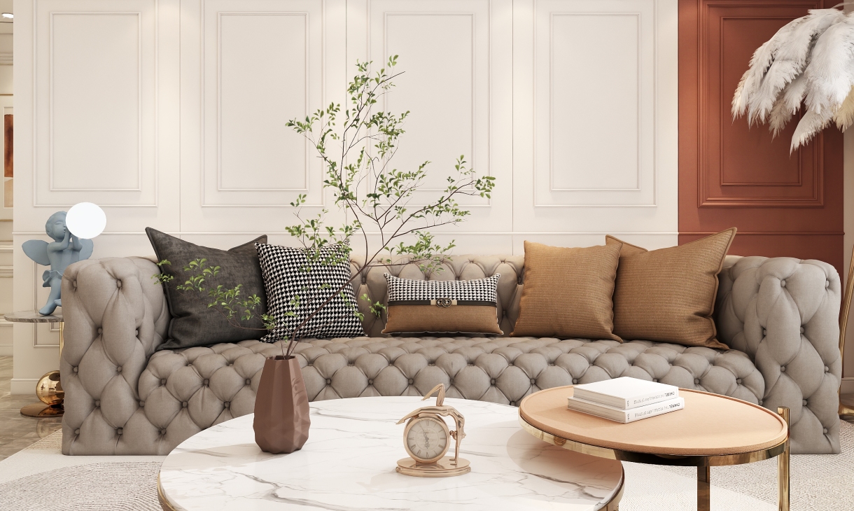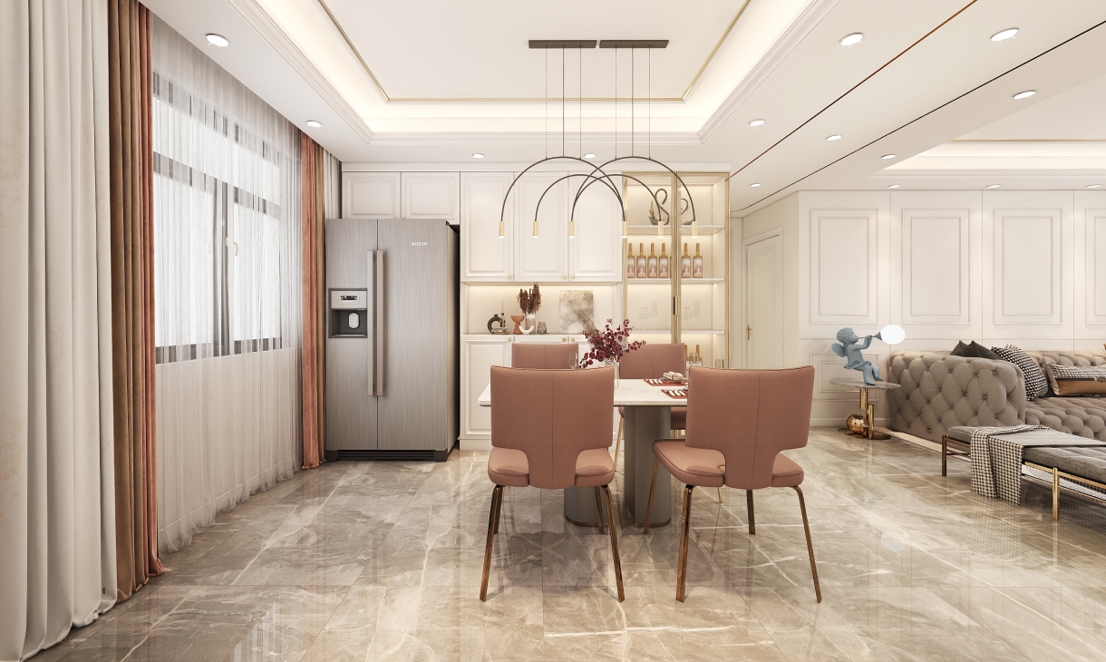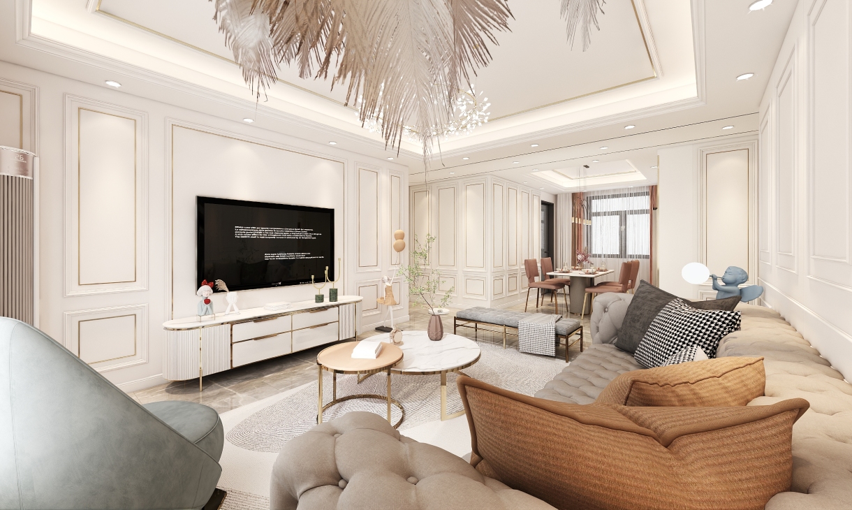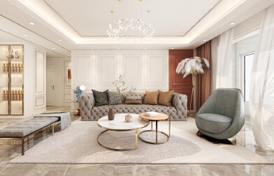 色彩鮮明,層次感強烈 色彩是定位風格的重要因素,想要打造出輕奢的感覺,必然要經(jīng)過巧妙的色彩搭配,才能顯現(xiàn)出豐富的魅力。 在色彩選擇上,輕奢風格一般會選用帶有高級感的中性色,諸如駝色、象牙白、奶咖、黑色及碳灰色,來演繹一種“低調的奢華”,令空間質感更為飽滿。黑色、碳灰色等深色調,則需要在反光材質上,如玻璃、絲絨、鏡面等元素中,將華麗的格調最大化彰顯。