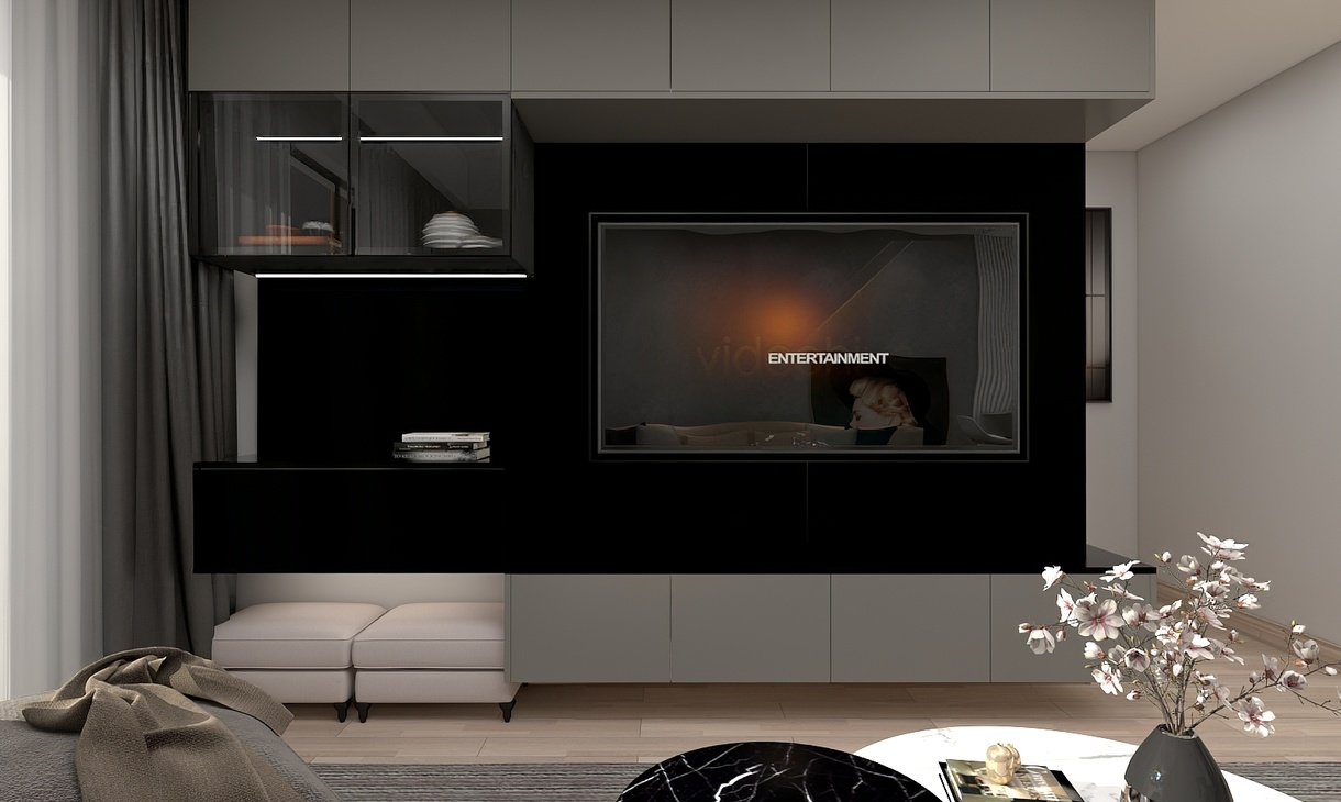 簡約但不簡單。電視柜體現(xiàn)著房主的個(gè)性及實(shí)用性,必要時(shí)可以考慮自行設(shè)計(jì)制作個(gè)性化的電視柜。