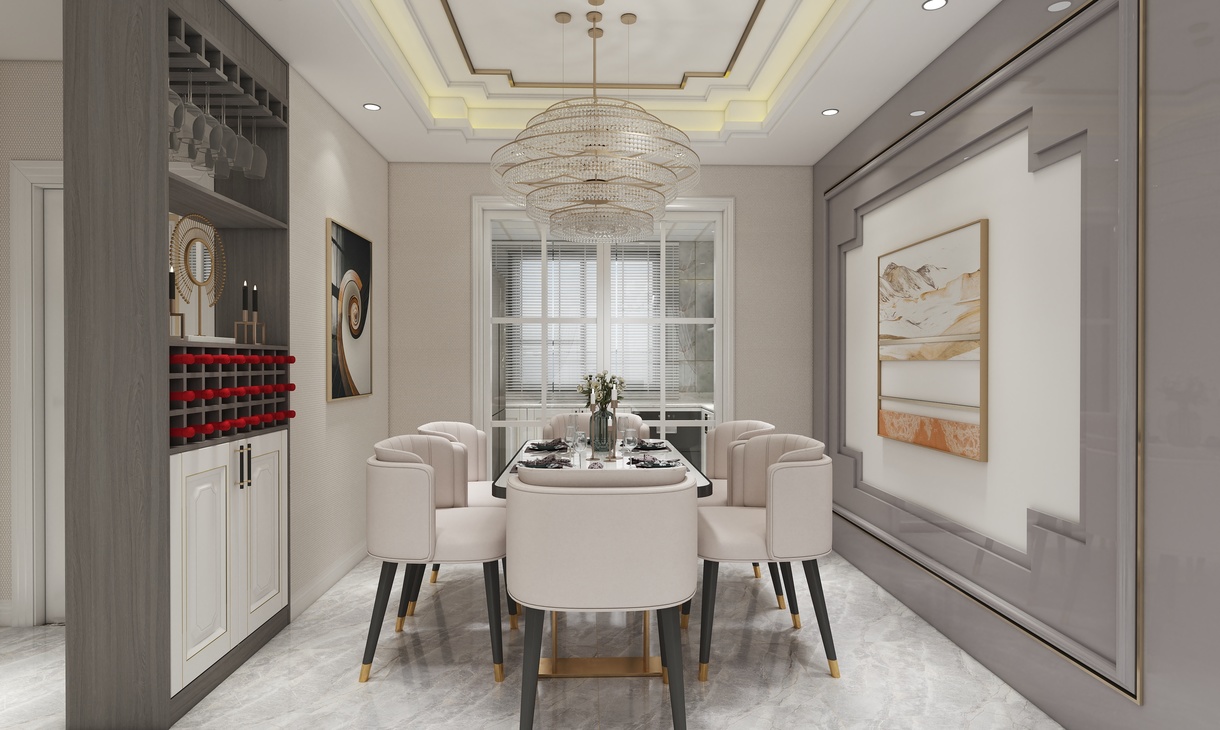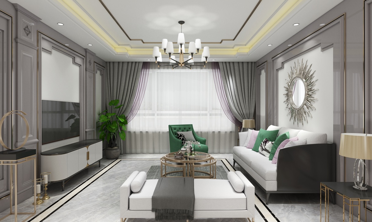 結(jié)合了現(xiàn)代輕奢風(fēng)以及美式風(fēng)格,融入不銹鋼金色線條又不失灰色的穩(wěn)重。