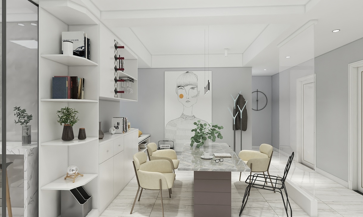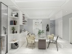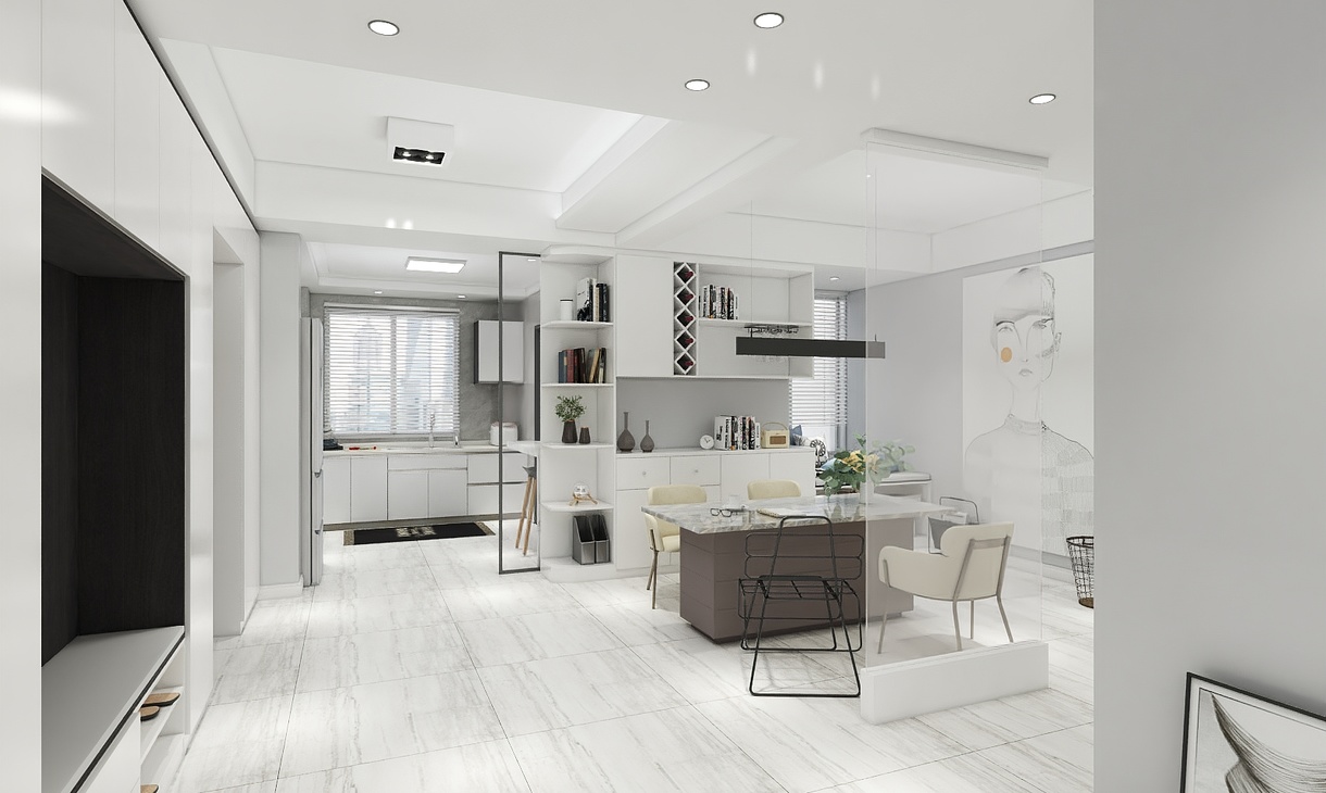 簡約 平時做飯少 餐廳兼具書房功能,廚房的小吧臺,解決倒班時候的簡餐空間